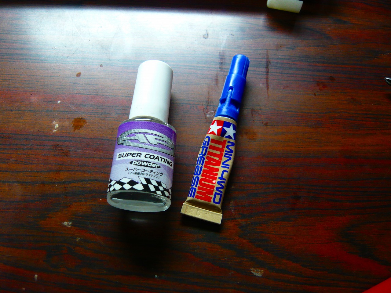 ケミカルはタミヤチタングリスと、HPIのフッ素コート(ドライタイプ)を使用しています。
