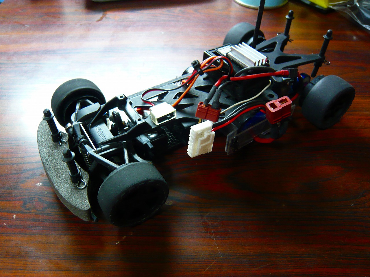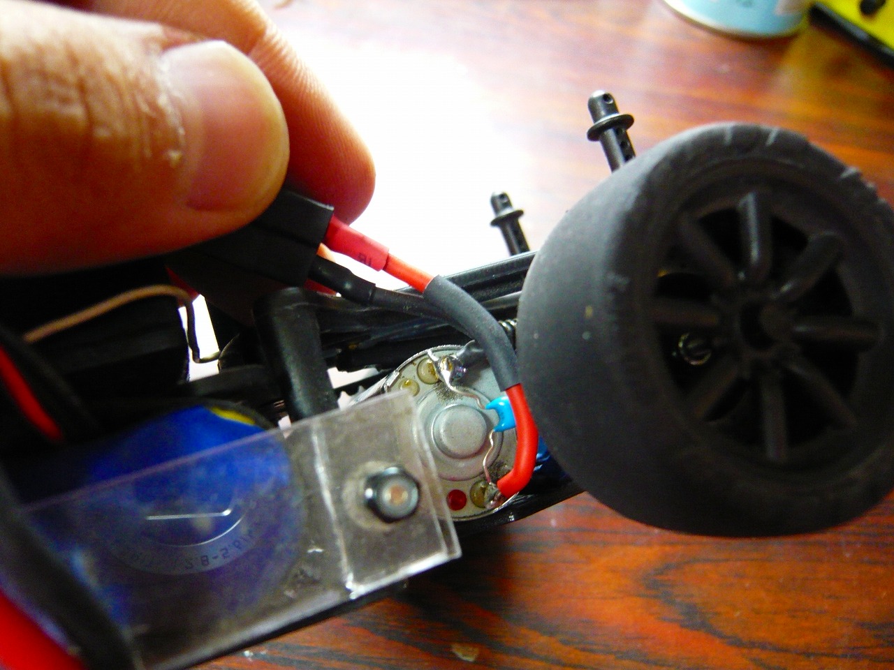 また、モーターの線がホイールと接触して真線が出ていたので、収縮チューブで覆いました。